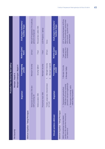 Prosedur Tim Security dan Safety Manajer : Bapak G Manajer Cadangan : Bapak H Penanggung Jawab Manajer Security Security Officer Manajer Security Security Manajer 1. Manajer Logistik 2. Penanggung Jawab 1. Manajer Security 2. Manajer Safety