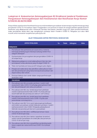 penyebaran COVID-19. Perusahaan dapat menggunakan alat penilaian di bawah ini sebagai patokan apakah protokol